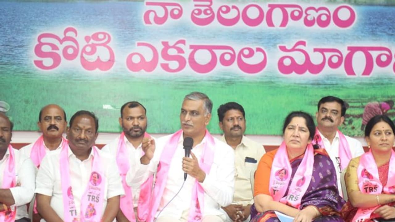 గతంలో అన్ని ప్రభుత్వాలు వడ్లు కొనుగోలు చేశాయని హరీష్ రావు చెప్పారు. మొట్టమొదటి సారి మోడీ ప్రభుత్వం వడ్లు కొనమని మొండికేస్తుందని విమర్శించారు. పంజాబ్లో వడ్లు కొని తెలంగాణ లో ఎందుకు కొనడం లేదని టీఆర్ఎస్ ఎంపీ లు ఢిల్లీలో కొట్లాడుతున్నారని చెప్పారు. పంజాబ్ కి ఒక న్యాయం.. తెలంగాణ కు ఒక న్యాయమా అని హరీష్ రావు మండిపడ్డారు. ధాన్యం కొనుగులు బాధ్యత కేంద్రానిదేనని చెప్పారు. ‘వన్ నేషన్.. వన్ రేషన్’ అన్నప్పుడు.. ‘‘వన్ నేషన్.. వన్ ప్రొక్యూర్మెంట్’’ ఉండాలని హరీష్ రావు డిమాండ్ చేశారు.