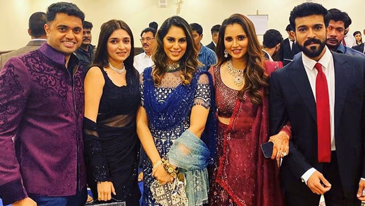 టెన్నిస్ స్టార్ సానియా మీర్జా సోదరి ఆనమ్ మీర్జా వివాహం.. మాజీ క్రికెటర్ , హెచ్ సీఏ అధ్యక్షుడు అజారుద్దీన్ కుమారుడు అసద్ తో ఇటీవల ఘనంగా నిర్వహించిన సంగతి తెలిసిందే. కాగా... రిసెప్షన్ కూడా చాలా గ్రాండ్ గా నిర్వహించారు. ఈ రిసెప్షన్ కి టాలీవుడ్ హీరో రామ్ చరణ్ తన భార్యతో కలిసి వచ్చి సందడి చేశారు.