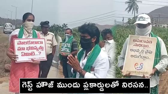 మెగాస్టార్ చిరంజీవి, నాగార్జున గుంటూరు జిల్లా తాడేపల్లిలోని గోకరాజు గంగరాజు గెస్ట్ హౌస్ వద్దకు చేరుకున్న విషయం తెలుసుకున్న రాజధాని రైతులు మద్దతు కోసం అక్కడికి చేరుకున్నారు. అమరావతి రాజధానిగా ఉండేందుకు మద్దతు తెలపాలని ఫ్లకార్డులతో నిరసన తెలిపారు. గెస్ట్ హౌస్ వద్దకు వచ్చిన నిరసన కారులను, రైతులని పోలీసులు అడ్డుకున్నారు. ఏపీ సీఎం వైఎస్ జగన్ తో భేటీకోసం చిరంజీవి టీమ్ ఏపీకి వెళ్లిన విషయం తెలిసిందే.
