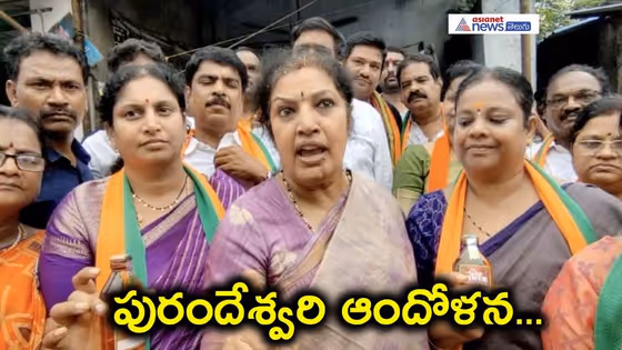 వైన్ షాప్ కు వెళ్లి... క్వాటర్ సీసాలతో రోడ్డుపైకి..: పురందేశ్వరి ఆందోళన