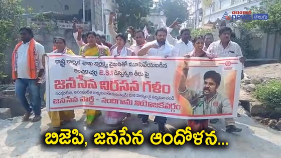 నందిగామ : కార్మికులు, ఉద్యోగులు, వారి కుటుంబాల కోసం ఈఎస్ఐ హాస్పిటల్ ను పున:ప్రారంభించాలంటూ ఎన్టీఆర్ జిల్లా కంచికచర్లలో బిజెపి, జనసేన పార్టీలు ఆందోళన చేపట్టాయి.
