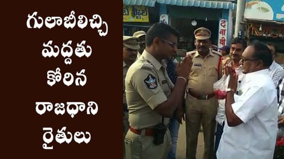 సకలజనుల సమ్మె : గులాబీలిచ్చి మద్దతు కోరిన రాజధాని రైతులు