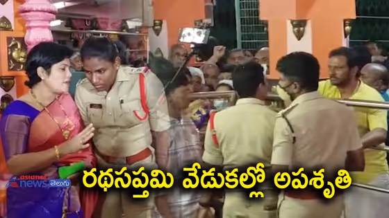 శ్రీకాకుళం : అరసవల్లి దేవాలయంలో రథ సప్తమి సందర్భంగా భక్తులు పోటెత్తారు. పోలీసులకు భక్తులకు మధ్య తోపులాట జరిగింది. రూ. 500 టికెట్ తీసుకున్నా కూడా తమను క్యూ లైన్లో ఎదురుచూసేలా చూడడం ఏంటీ? ఏంటి అన్యాయం అంటూ మండిపడ్డారు. ఈఓ ఎక్కడ ఉన్నా వచ్చి సమాధానం చెప్పాలని డిమాండ్ చేశారు. రూ.500 టికెట్ కి భక్తులకు దర్శనం చేసుకోవాల్సిన 5 గంటల సమయం వీఐపీలను పంపుతున్న తరుణంలో ఈ వివాదం చోటుచేసుకుంది. ప్రముఖ పుణ్యక్షేత్రం అరసవల్లి శ్రీ సూర్యనారాయణ స్వామి దేవాలయంలో వెలుగుల రేడు జన్మదినోత్సవ వేడుకలు అంగరంగ వైభవంగా ప్రారంభమయ్యాయి. దేవాదాయ శాఖ కమీషనర్ హరిజవహర్ లాల్ ఈ వేడుకలకు అంకురార్పణ చేసి స్వామి వారికి పట్టు వస్త్రాలు సమర్పించారు. అనంతరం క్షీరాభిషేకం నిర్వహించి ఆదిత్యుని నిజరూపానికి వివిధ సుగంధ ద్రవ్యాలతో అభిషేకాలు జరిపారు. ఈ ఉత్సవాలను సంప్రదాయ బద్దంగా జరిపించడానికి జిల్లా యంత్రంగం అన్ని ఏర్పాట్లను చేసింది. రధసప్తమి రోజున స్వామి వారిని దర్శించుకుంటే రోగ శోక బాధలన్నీ తొలిగిపోతాయని భక్తుల విశ్వాసం.
