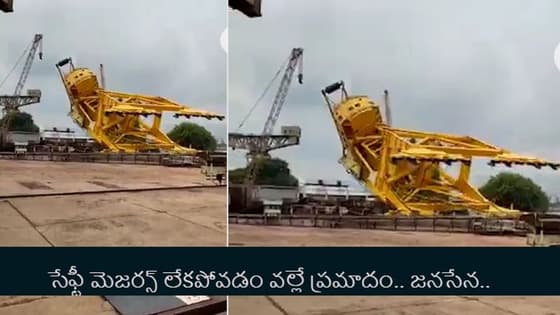 హిందుస్థాన్ షిప్యార్డ్లో ఘోర ప్రమాదం చోటుచేసుకుంది. భారీ క్రేన్ కూలి పదిమంది వరకు కార్మికులు చిక్కుకుపోయారు. వీరిలో ఏడుగురిని వెలికి తీశారు. అయితే ప్రమాద వివరాలు చెప్పడానికి యాజమాన్యం నిరాకరిస్తోంది. జనసేన కార్యకర్తలు కార్మికులకు తమ మద్దతు తెలిపారు. అంతేకాదు సేఫ్టీ మెజర్స్ లేకపోవడం వల్లే క్రేన్ ప్రమాదం జరిగిందని జనసేన నాయకులు అంటున్నారు. సేఫ్టీ మెజర్స్ లేని కంపెనీలన్నీ మూసేయాలని వారు ప్రభుత్వాన్ని డిమాండ్ చేశారు.