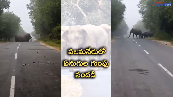 చిత్తూరు : తెల్లవారుజామున పొగమంచును చీల్చుకుంటూ వంపులు తిరుగిన రోడ్డుపై పచ్చని ప్రకృతి అందాలను ఆస్వాదిస్తూ వెళుతున్న వాహనదారులకు మరో బోనస్ లభించింది. పొగమంచులో ప్రత్యక్షమైన ఏనుగుల గుంపు పచ్చటి చెట్ల మధ్యలో సందడి చేస్తుంటే చూస్తుండిపోయారు. ఈ అద్భుత అవకాశం చిత్తూరు జిల్లా పలమనేరు వాసులకు లభించింది. ఇవాళ(బుధవారం) తెల్లవారుజామున పలమనేరు సమీపంలోని మొసలిమడుగు వద్ద 22 ఏనుగులతో కూడిన గుంపు రోడ్డుపైకి వచ్చి హల్ చల్ చేసింది. ఈ ఏనుగుల గుంపును కొందరు వాహనదారులు తమ సెల్ ఫోన్లలో బంధించి సోషల్ మీడియాలో పెట్టడంతో ఆ వీడియో వైరల్ గా మారింది.