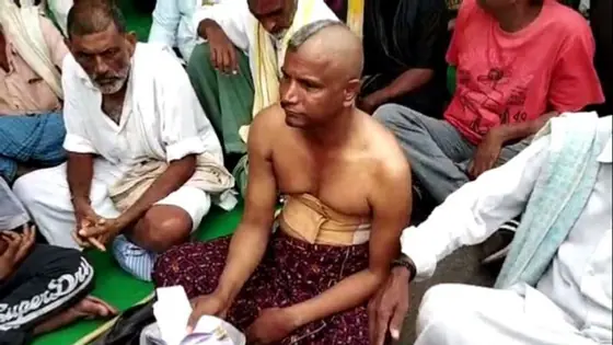 తుళ్లూరులో రైతులు నిరసనకు వింతవింత దారులు వెతుకుతున్నారు. ఓ రైతు అరగుండుతో నిరసనకు దిగాడు. అరగుండు, అరమీసంతో రోడ్డుమీదికి వచ్చి నిరసన తెలిపాడు. తను యాక్టర్ ని కాదని రైతునని తనదగ్గర అన్ని ఆధారాలూ ఉన్నాయని చెప్పాడు.