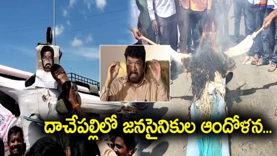 గుంటూరు: సీనీ హీరో, జనసేన పార్టీ అధ్యక్షులు పవన్ కల్యాణ్ పైనే కాదు ఆయన కుటుంబంపై సినీనటుడు పోసాని కృష్ణ మురళి అనుచిత వ్యాఖ్యలు చేసిన విషయం తెలిసిందే. దీంతో జనసేన శ్రేణులతో పాటు పవన్ అభిమానులు పోసానిపై ఆగ్రహం వ్యక్తం చేస్తున్నారు. ఈ క్రమంలోనే గుంటూరు జిల్లా దాచేపల్లి పట్టణంలోని అద్దంకి-నార్కట్పల్లి హైవేపై పోసాని దిష్టి బొమ్మను దగ్ధం చేశారు. పోసాని దిష్టి బొమ్మకు లంగాతో పాటు చెప్పుల దండ వేసి... చెప్పులతో కొడుతూ ఊరేగించి దిష్టిబొమ్మను దగ్దం చేసారు జన సైనికులు.