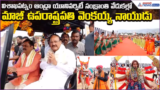 విశాఖపట్నంలో ఆంధ్రా యూనివర్సిటీ మైదానంలో నిర్వహించిన సంక్రాంతి వేడుకల్లో భారత మాజీ ఉపరాష్ట్రపతి ఎం. వెంకయ్య నాయుడు పాల్గొన్నారు. సంప్రదాయ వస్త్రధారణలో హాజరైన వెంకయ్య నాయుడు, కళాకారుల ప్రదర్శనలు తిలకిస్తూ ప్రేక్షకులను ఉత్సాహపరిచారు. గ్రామీణ సంస్కృతి, తెలుగు సంప్రదాయాలకు సంక్రాంతి పండుగ ప్రతీకగా నిలుస్తుందని ఈ సందర్భంగా ఆయన అన్నారు. వేడుకల్లో విశేష సంఖ్యలో ప్రజలు, విద్యార్థులు పాల్గొన్నారు.