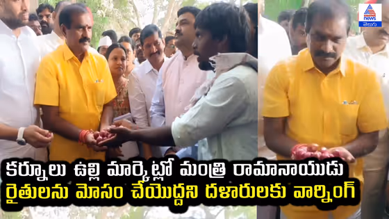 కర్నూలు ఉల్లి మార్కెట్లో మంత్రి రామానాయుడు రైతులను మోసం చేయొద్దని దళారులకు వార్నింగ్