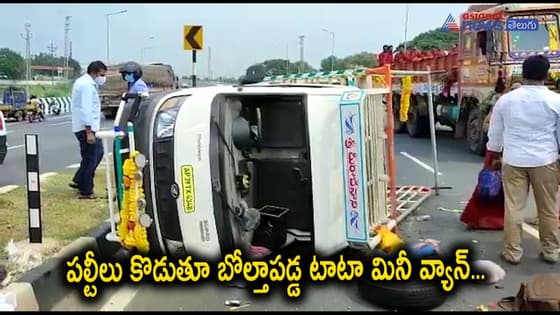 విజయవాడ: తణుకు నుంచి విజయవాడ కనకదుర్గమ్మ దర్శనానికి 20 మంది భక్తులతో బయల్దేరిన టాటా మినీ వ్యాన్ రోడ్డు ప్రమాదానికి గురయ్యింది.