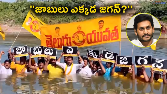 గుంటూరు : వైసిపి ప్రభుత్వం ఉద్యోగాల భర్తీని చేపట్టాలని డిమాండ్ చేస్తూ ప్రతిపక్ష టిడిపి వినూత్న నిరసన చేపట్టింది. రాష్ట్రంలోని అన్ని ప్రభుత్వ శాఖల్లో ఖాళీలను వెంటనే భర్తీ చేయాలంటూ గుంటూరు జిల్లా తెలుగు యువత ఆధ్వర్యంలో జలదీక్ష చేపట్టారు. గుంటూరు తెలుగుయువత అధ్యక్షుడు రావిపాటి సాయికృష్ణతో పాటు ఇతర నాయకులు గుంటూరు ఛానెల్ లోని నీటిలో దిగి నిరసన తెలిపారు. 'జాబులు ఎక్కడ జగన్?' అంటూ నీటిలోనే ప్లకార్డులు ప్రదర్శిస్తూ నిరసన తెలిపారు.