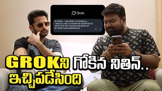 హీరో నితిన్, హీరోయిన్ శ్రీలీల ప్రధాన పాత్రల్లో నటించిన టాలీవుడు అప్కమింగ్ మూవీ `రాబిన్హుడ్`. వెంకీ కుడుముల డైరెక్షన్లో మైత్రీ మూవీ మేకర్స్ ఈ సినిమా నిర్మించారు. యాక్షన్ హీస్ట్ కామెడీ ఎంటర్టైనర్గా రూపొందిన రాబిన్ హుడ్ మూవీ మార్చి 28న థియేటర్లలో విడుదల కానుంది. కాగా, మార్చి 21న సాయంత్రం 04.05 గంటలకు ట్రైలర్ రిలీజ్ చేయనున్నారు. ఈ సందర్భంగా హీరో నితిన్, డైరెక్టర్ వెంకీ కుడుముల గ్రోక్తో సంభాషించిన సరదా వీడియోని షేర్ చేసుకున్నారు. చూసేయండి.