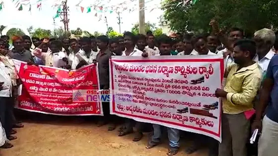 గుంటూరు జిల్లా అచ్చంపేట లో భవననిర్మాణ కార్మికులు ‘రావాలి ఇసుక కావాలి ఇసుక’ నినాదంతో ర్యాలీ నిర్వహించారు. ఇసుక లేక ఉపాధి కోల్పోయిన కార్మికులకు పదివేల రూపాయలు కరువు భృతి అందజేయాలని వారు తహసీల్దార్ గారికి అర్జీలు అందజేశారు.