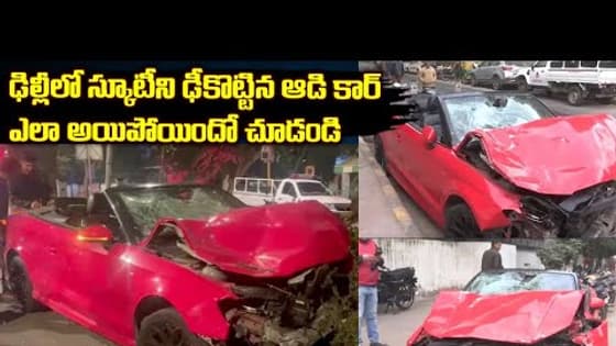 ఢిల్లీలో స్కూటీని ఢీకొట్టిన ఆడి కార్ ఎలా అయిపోయిందో చూడండి