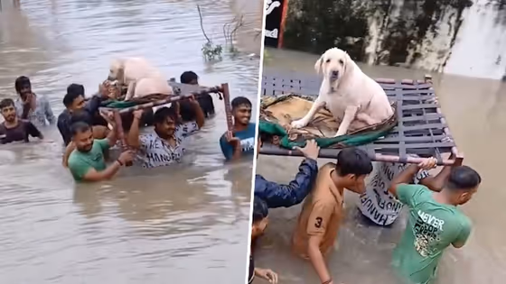 వడోదరలో వరదల్లో కొట్టుకపోతున్న ఓ శునకాన్ని స్థానికులు ఎలా కాపాడారో చూడండి