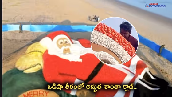 ఒడిషా : కేవలం ఇసుకతో అద్భుతమైన శిల్పాలు రూపొందించే ప్రముఖ సైకత శిల్పి నవీన్ పట్నాయక్ క్రిస్మస్ పండగ సందర్భంగా మరో అద్భుతాన్ని ఆవిష్కరించారు. క్రిస్మన్ అనగానే మనకు గుర్తువచ్చేది శాంటా క్లాజ్ (బహుమతులిచ్చే తాత). ఈ శాంతా క్లాజ్ బొమ్మలను చాలామంది ఇళ్లముందు పెట్టుకుంటుంటారు... కానీ నవీన్ పట్నాయక్ మాత్రం ఇసుక, టమాటాలతో సరికొత్త శాంతా క్లాజ్ రూపొందిచాడు.