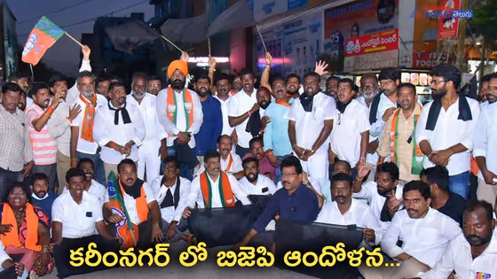 సంజయన్నకు అడ్డొస్తే అడ్డంగా నరికేస్తామంటూ... కరీంనగర్ లో బిజెపి శ్రేణుల ఆందోళన