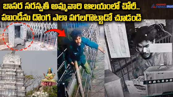 బాసర సరస్వతీ అమ్మవారి ఆలయంలో చోరీ.. హుండీను దొంగ ఎలా పగలగొట్టాడో చూడండి.