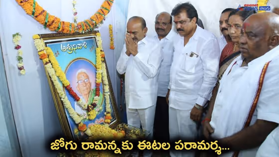 ఆదిలాబాద్ : ఇటీవలే తల్లిని కోల్పోయిన మాజీ మంత్రి, టీఆర్ఎస్ ఎమ్మెల్యే జోగు రామన్నను బిజెపి ఎమ్మెల్యే ఈటల రాజేందర్ పరామర్శించారు. ప్రజాగోస - బిజెపి భరోసా కార్యక్రమం కోసం ఆదిలాబాద్ వెళ్లిన ఈటన ముందుగా జోగు రామన్న ఇంటికి వెళ్ళారు. రామన్న తల్లి జోగు బోజమ్మ (98) చిత్రపటం వద్ద పూలుజల్లిన ఈటల నివాళి అర్పించారు. అనంతరం కొద్దిసేపు అక్కడే వుండి సహచర మాజీ మంత్రి జోగు రామన్నతో ముచ్చటించాడు.