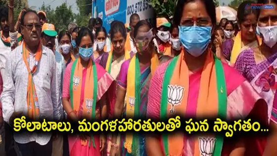 కరీంనగర్: హుజురాబాద్ ఉపఎన్నికలో నామినేషన్ల పర్వం ముగియడంతో ప్రధాన పార్టీలన్నీ మరింత సీరియస్ గా ఎన్నికల ప్రచారాన్ని చేపడుతున్నాయి. ఈ క్రమంలో ఇవాళ(ఆదివారం) బిజెపి అభ్యర్థి ఈటల రాజేందర్ సతీమణి జమున ఇంటింటి ప్రచారాన్ని చేపట్టారు. జమ్మికుంట మండలం శాయంపేటకు బిజెపి పార్టీ తరపున ప్రచారంలో పాల్గొన్న జమునకు గ్రామస్తులు ఘనస్వాగతం పలికారు. మహిళలు కోలాటాలతో, మంగళహారతులతో జమునకు స్వాగతం పలికారు.