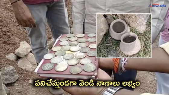 కరీంనగర్ జిల్లాలో ఉపాధి హామీ పనిచేస్తుండగా కూలీలకు దొరికిన వెండి నాణాలు