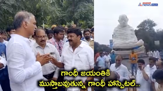 గాంధీ హాస్పిటల్ వద్ద భారీ జాతిపిత విగ్రహం... పరిశీలించిన మంత్రులు హరీష్, తలసాని