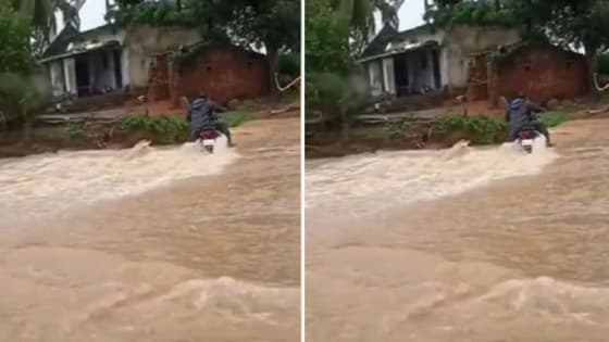 వరంగల్ : తెలంగాణలో కురుస్తున్న భారీ వర్షాలు ప్రమాదాలు సృష్టిస్తున్నాయి. వరద నీటితో పొంగిపొర్లుతున్న వాగులు వంకలు దాటే ప్రయత్నంచేస్తూ కొందరు ప్రాణాలమీదకు తెచ్చుకుంటున్నారు. ఇలా హన్మకొండ జిల్లా వేలేరు మండలం కన్నారం వాగును కూడా ఉప్పొంగుతూ రోడ్డుపైకి వరద చేరింది. ప్రమాదకరంగా ప్రవహిస్తున్న వాగును బైక్ తో సహా దాటడానికి ప్రయత్నిస్తుండగా మహేందర్ అనే వ్యక్తి ప్రవాహంలో కొట్టుకుపోయాడు. ఉదృత ప్రవాహాన్ని దాటిన మహేందర్ మరో రెండు అడుగుల్లో వాగు దాటుతాడనగా ఒక్కసారిగా ప్రవాహంలో పడిపోయి కొట్టుకుపోయాడు. అందరి కళ్ల ముందే మహేందర్ వాగులో కొట్టుకుపోయి ప్రాణాలు కోల్పోయాడు.