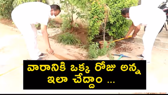 కే ట్ ర్ పిలుపు మేరకు ఇంటి పరిసరాలు శుభ్రపరచిన మంత్రి మల్లారెడ్డి