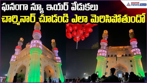 హైదరాబాద్ చార్మినార్ వద్ద న్యూ ఇయర్ 2026 వేడుకలు ఘనంగా జరిగాయి. రంగురంగుల లైట్లు, సంగీత కార్యక్రమాలు, కేకుల కటింగ్తో చార్మినార్ పరిసరాలు పండుగ వాతావరణంతో కళకళలాడాయి.