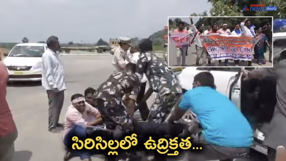 సిరిసిల్ల : మంత్రి కేటీఆర్ పర్యటన రోజే రాజన్న సిరిసిల్ల జిల్లాలో ప్రజాసంఘాల ఆందోళన చేపట్టాయి.