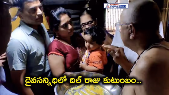 ధర్మపురి ఆలయంలో దిల్ రాజు కుటుంబం... కొడుకుతో కలిసి సందడి...