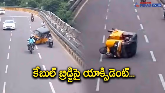 హైదరాబాద్ కేబుల్ బ్రిడ్జిపై ప్రమాదం... ఆటో ఎంత విచిత్రంగా బోల్తాపడిందో చూడండి..!