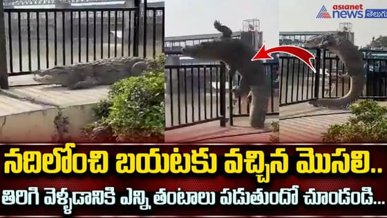నదిలోంచి బయటకు వచ్చిన మొసలి.. తిరిగి వెళ్ళడానికి ఎన్ని తంటాలు పడుతుందో చూండండి...