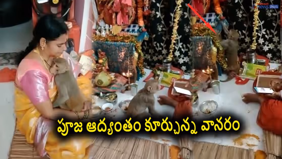 శ్రీరామా నవమి నాడు ఒక వానరం ఒక ఇంట్లో జరుగుతున్న రాములవారి కల్యాణానికి విచ్చ్సి అక్కడ పూజ అయ్యే వరకు ఉండడమే కాకుండా ప్రసాదాలను స్వీకరించి ఆ ఇంటి యజమానురాలి ఒళ్లో కూర్చొని సేదతీరింది. ఈ వీడియో ప్రస్తుతం నెట్టింట హల్చల్ చేస్తుంది..!