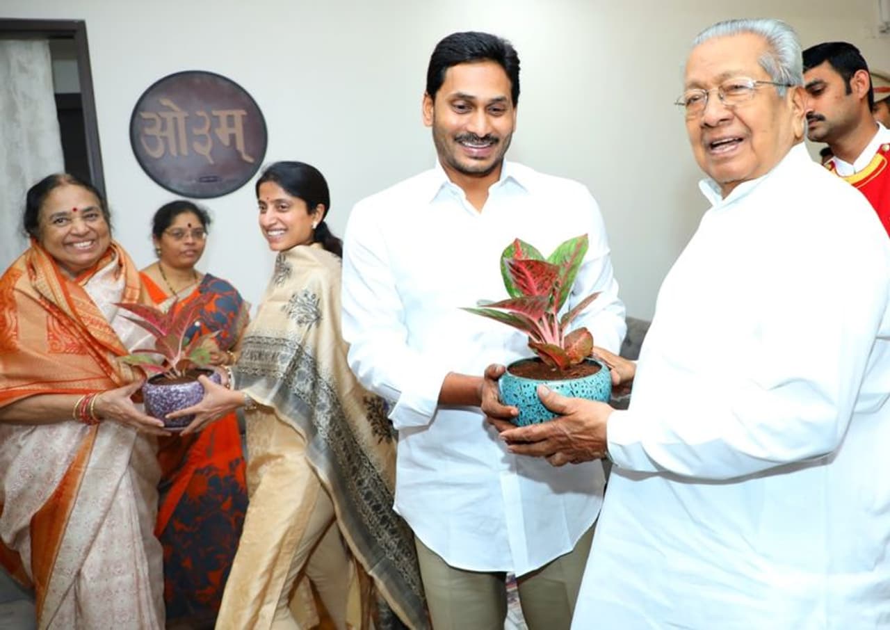 సీఎం క్యాంప్ కార్యాలయం నుండి నేరుగా విజయవాడలోని రాజ్ భవన్ కు జగన్, భారతి దంపతులు చేరుకున్నారు. మొదట గవర్నర్ దంపతులకు నూతన సంవత్సర శుభాకాంక్షలు తెలియజేస్తూ మొక్కలను బహూకరించారు. అనంతరం గవర్నర్ దంపతులను సీఎం దంపుతులు శాలువాతో గౌరవించి జ్ఞాపికను అందించారు.