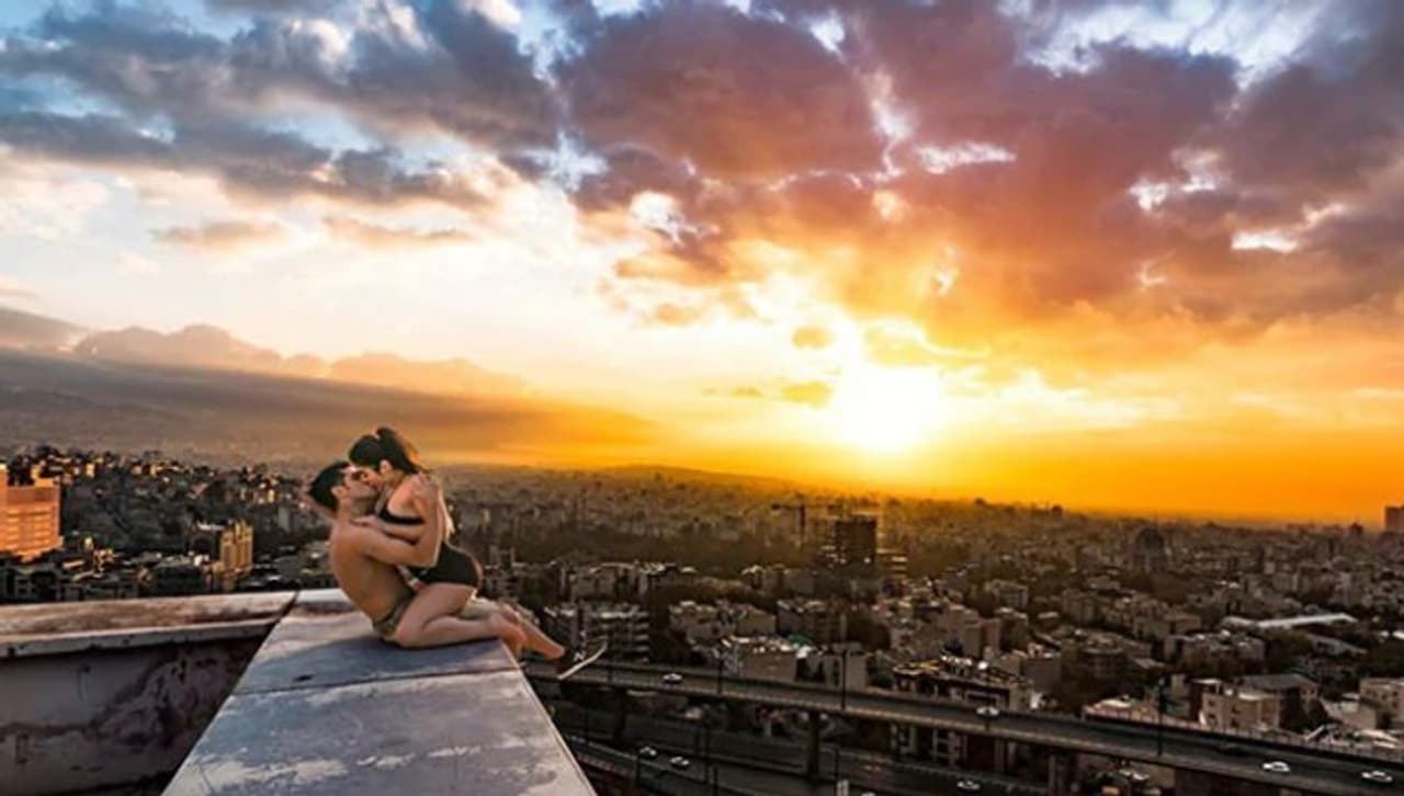 ఈ సంఘటన ఇరాన్ లో చోటుచేసుకోగా.. పూర్తి వివరాలు ఇలా ఉన్నాయి. ఎత్తైన భవనంపై తన స్టంట్ భాగస్వామిని ముద్దు పెట్టుకున్న ఫొటోలను ప్రముఖ పార్కుర్ అథ్లెట్ అలిరెజా జపాలాఘీ సోషల్ మీడియాలో షేర్ చేశాడు.