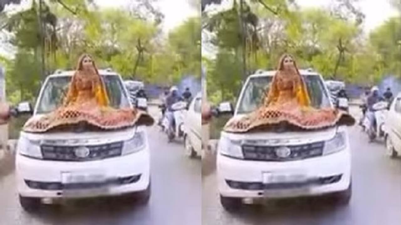 ప్రయాగ్ రాజ్ లో ఆదివారం ఒక మహిళ, పెళ్లి కూతురి వేషధారణలో కదులుతున్న కారు బానెట్పై కూర్చుని ఇన్స్టాగ్రామ్ రీల్ చేసిన ఘటన వైరల్ అయ్యింది.
