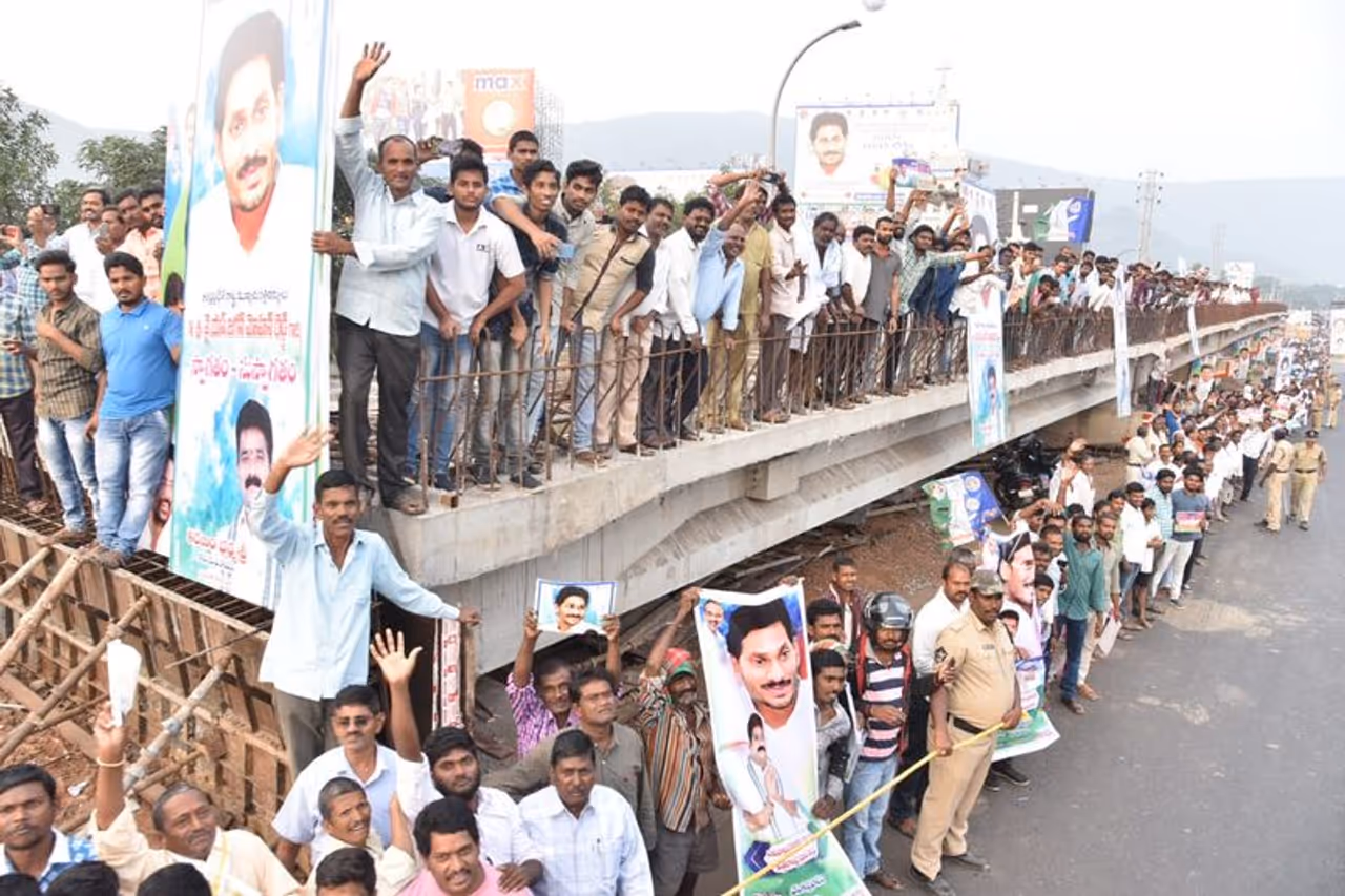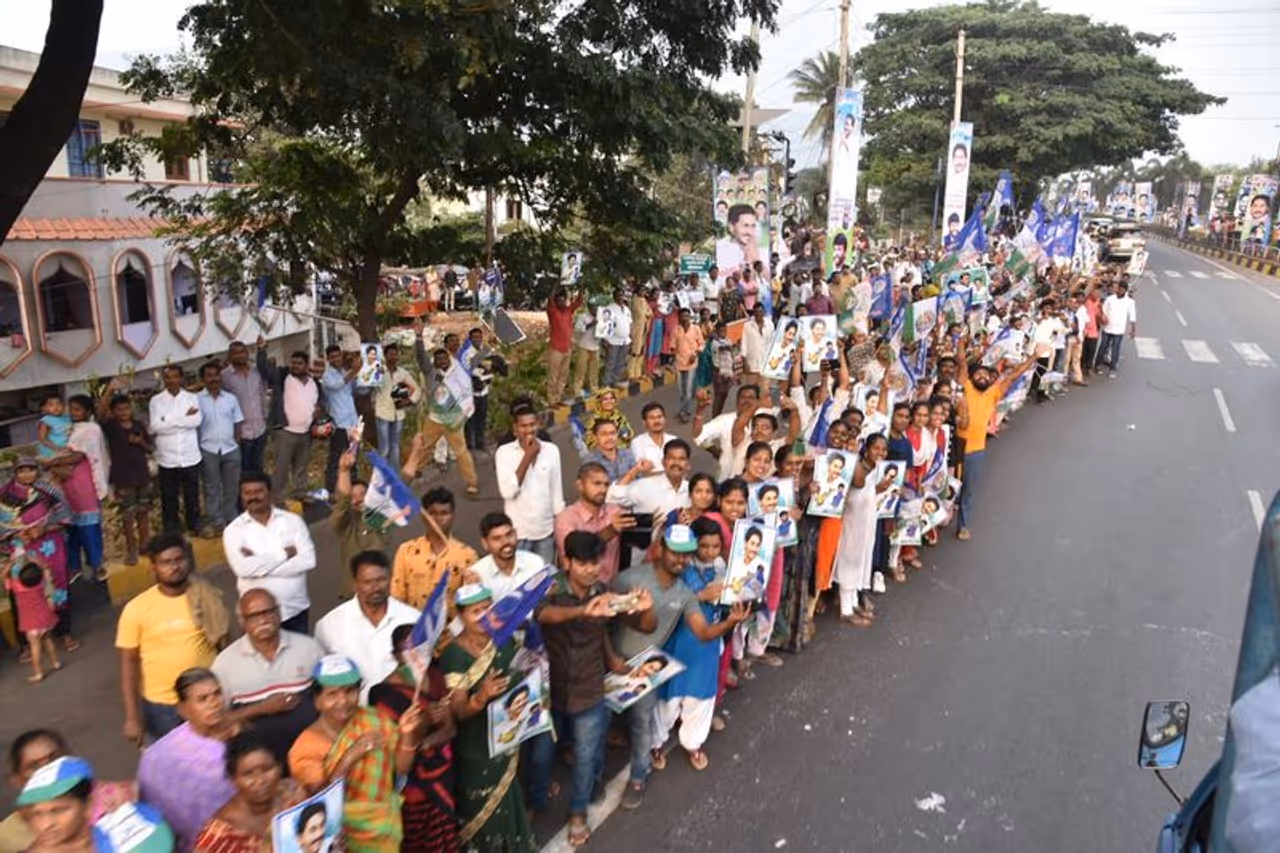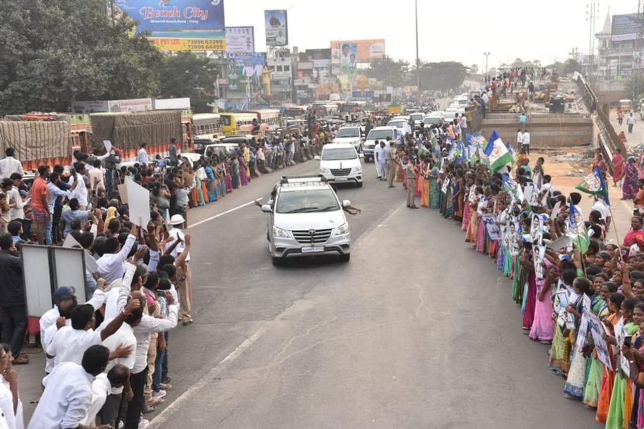 సీఎం విశాఖ నగర పర్యటన సందర్భంగా దాదాపు 24 కిలోమీటర్ల మేర ప్రజలు భారీ మానవహారం నిర్వహించారు. విశాఖ విమానాశ్రయం నుంచి ఎన్ఏడీ జంక్షన్, కంచరపాలెం, తాటిచెట్లపాలెం, రైల్వేస్టేషన్ రోడ్డు, తెలుగుతల్లి ఫ్లైఓవర్, సిరిపురం జంక్షన్, చిన వాల్తేరు, కురుపాం టూంబ్, అప్పూ ఘర్ జంక్షన్ మీదుగా కైలాసగిరి వరకు గతంలో ఎప్పుడూ లేని విధంగా మానవహారంలా నిలబడి సీఎంకు కృతజ్ఞతా పూర్వక స్వాగతం పలికారు.