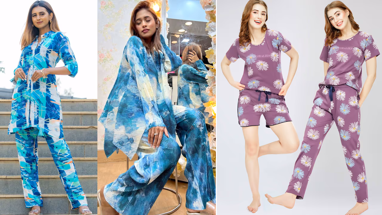 కో-ఆర్డ్ సెట్స్ లో పోల్కా డాట్స్, స్ట్రైప్స్, ఇండో-వెస్ట్రన్ ప్రింట్స్, స్కర్ట్+టాప్ ట్రెండ్ లో ఉన్నాయి. నైట్ సూట్స్ లో సాటిన్ పింక్, కాటన్ కుర్తా-పైజామా, ఫంకీ ప్రింట్స్ ఉన్న షార్ట్స్, లాంగ్ నైట్ గౌన్స్ బాగా నచ్చుతున్నాయి.